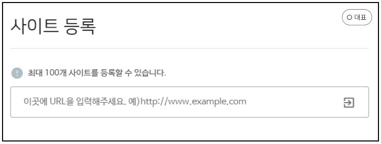- 웹마스터 도구에 들어가면 사이트 등록란에 티스토리 블로그 주소를 입력하고 오른쪽 끝에 있는 화살표 아이콘을 클릭합니다.